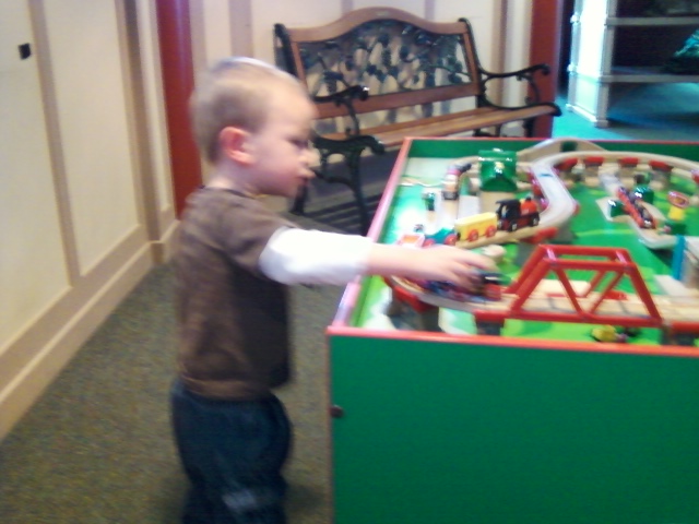 We also went up to the treehouse museum a lot to escape the heat. The boys' favorite things were definitely the train and fire engine as well as the health section. They have microscopes that Quinn spent a lot of time looking through and they both liked taking care of the babies,weighing them and giving them shots